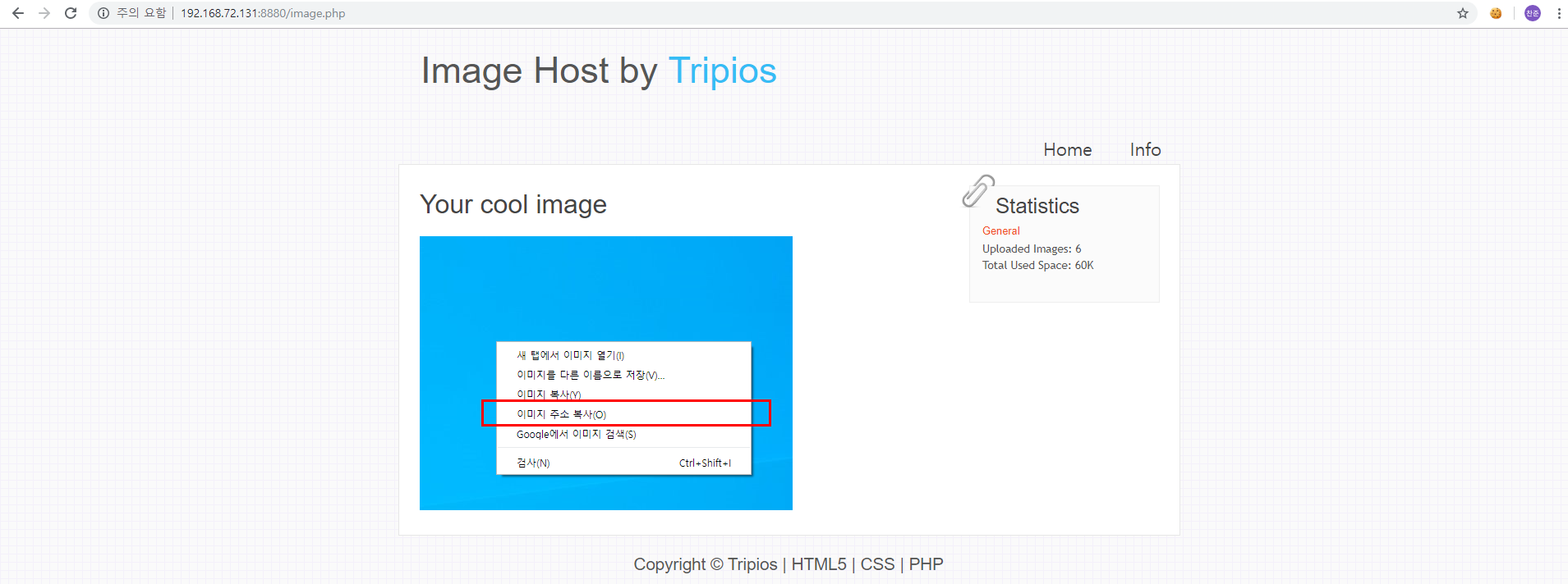 - /upload.php 헤더의 쿠키 값으로 업로드 한 이미지명 전송