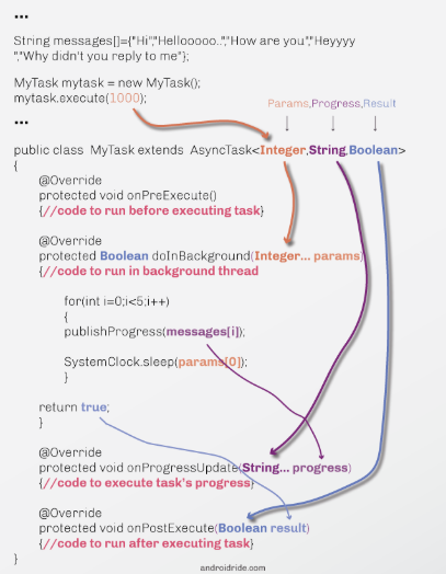 → 인자들은 doInBackground Method로 전달된다. (자료형 매칭 필수)