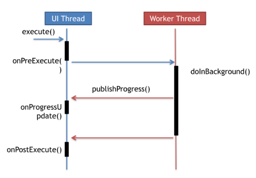 이중에서 doInBackground() Method가 Sub Thread에서 실행되고 나머지는 Main Thread에서 실행된다.